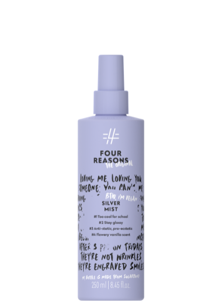 Το Silver mist αφαιρεί αποδοτικά τους κίτρινους τόνους, προσφέρει στα μαλλιά όγκο, όμορφη λάμψη και κάνει το χτένισμα εύκολο. Καταπολεμά το στατικό ηλεκτρισμό και θρέφει τα μαλλιά χωρίς να τα βαραίνει. Περιέχει αναζωογονητικά εκχυλίσματα βοτάνων από ινδική σεντέλα, παπάγια και ίριδα,